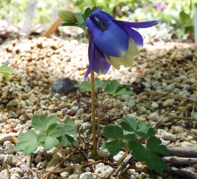モミジ下のロックもどきコーナーでチシマルリオダマキが咲き始めた.(5/23撮影)