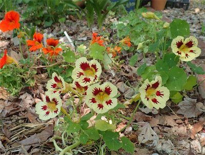 昨年蓼科で夏越しし,大阪で冬を越し,そして春に連れて来たナスタ,カメレオン.地植えにしたらドンドコ花が咲いてきた.(5/27撮影)