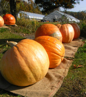 ゴロゴロと並んだ大きなカボチャ.