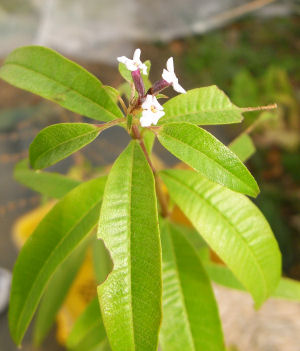 レモンバーベナに花が咲いていた.ここに植えられて10年以上経っている大株.