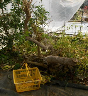 温室はダブルでビニールがかけられて天井が低くなっており,温度を下げない工夫がされている.今年は灯油の高騰で燃料費がかさむのが予想されるため,今から自己防衛といったところか.