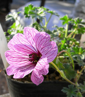 日野春ハーブガーデンから連れ帰った苗「ゲラニウム・バレリーナ」.