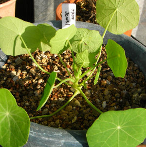 10/06に秋まきしたナスタ(T.majus),アタリヤのジュエル.ビニールポットのままの株が多い中,これは6号鉢に植え替えてあげた株.