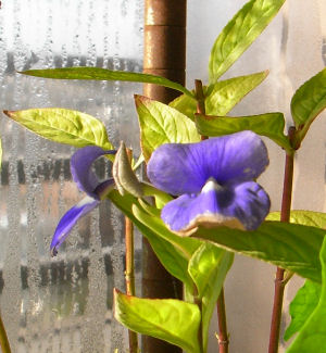 11月初旬に咲き始めた株.耐寒性が弱いので12月になって無加温ビニール温室内に入室.ただ,背が高くなって温室の棚におさまらずいつくか花の付いた枝はカットした.それでも画像のように開花中の枝が3つ残っている.