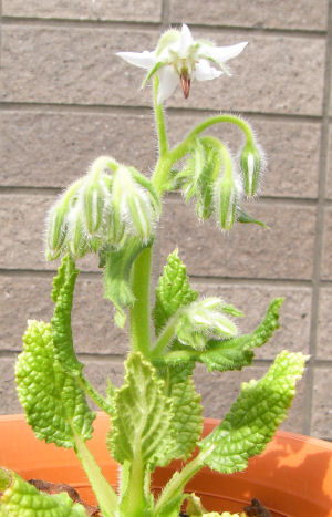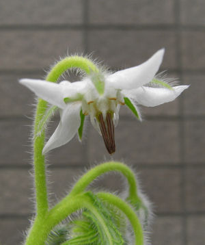 白ボリジの花茎が伸びてきた…と思ったら一気に咲いた.
