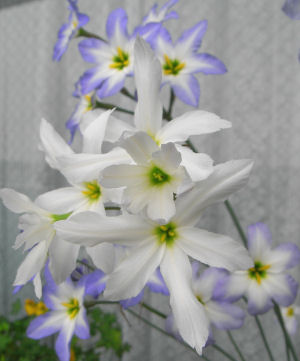リューココリネの最後の花芽が開いた.左画像のスジ入りの花.右画像の白花はその直前に咲いたもの.