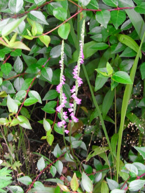 ネジバナと言うと芝生みたいなところで,サンサンと太陽の光が当たるところで咲くもんだと思っていた.