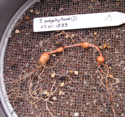 ポリフィラム1号(T. polyphyllum No.1)の地上部が枯れて水やりをやめてからしばらく経つ.