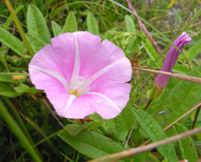 ヒルガオは別に珍しいということはない.大阪でも雑草化しているのを見かける.ただ,こんな天気の日には写真映りが良い.晴れた日だと淡いピンクは色が飛んでしまい,白く写ってしまうから.というわけで記念撮影.(^^)