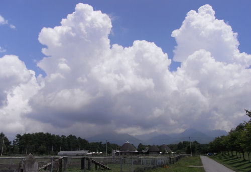 画像は標高1300mの原村・実践農業大学校にて.日陰でランチしていたら風は涼しかったが,一歩日向へ出ると…やはり暑い.この蒸し暑さでは大阪とたいして変わらない.早く気圧配置が変わって涼しくなって欲しい.