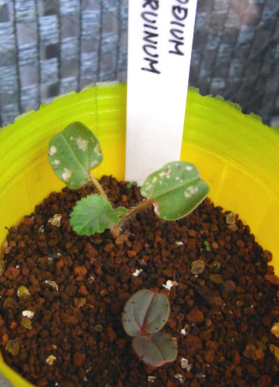 仕方なく植え替え.先に発芽した方は駄温鉢へ,小さな方は別のポリポットへ.