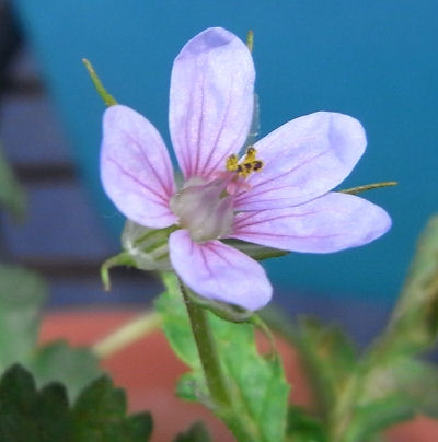 小鉢(ポリポット)で1つ咲いていたエロディウムの花.
