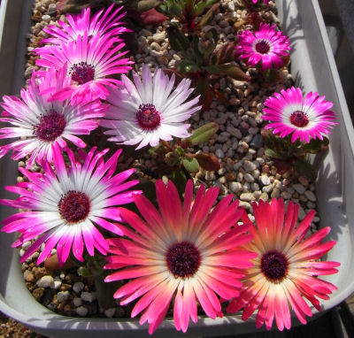 リビングストンデイジーと属は違うものの性質は似ており,日が当っていると開花するが当たらないとすぼんでいる.