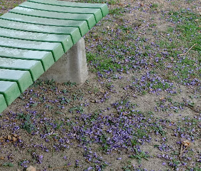 ベンチの下を見ると花がらがたくさん落ちている.ということは,これだけ花が咲いたという事!