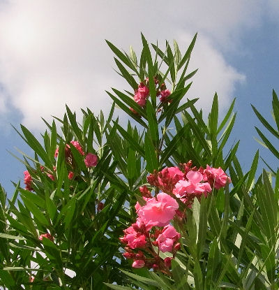 ギンギラギンの太陽にキョウチクトウの花.とても秋の光景とは思えない.