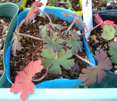 チビ苗で可哀想だけど,ゲラニウムたちは耐寒性が強いので北バルコニーで頑張ってもらっている.ここ数日寒い日が続いて葉が紅葉してきた.(^^;