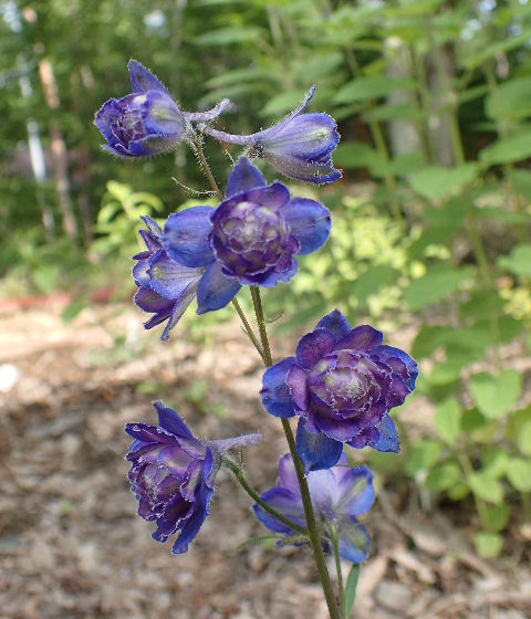 一方こちらも同時に購入したデルフィニウム.(デルフィニウム・パガン・パープル;6/24撮影)スィートセンセーションに比べ,花がみっちり付いている.